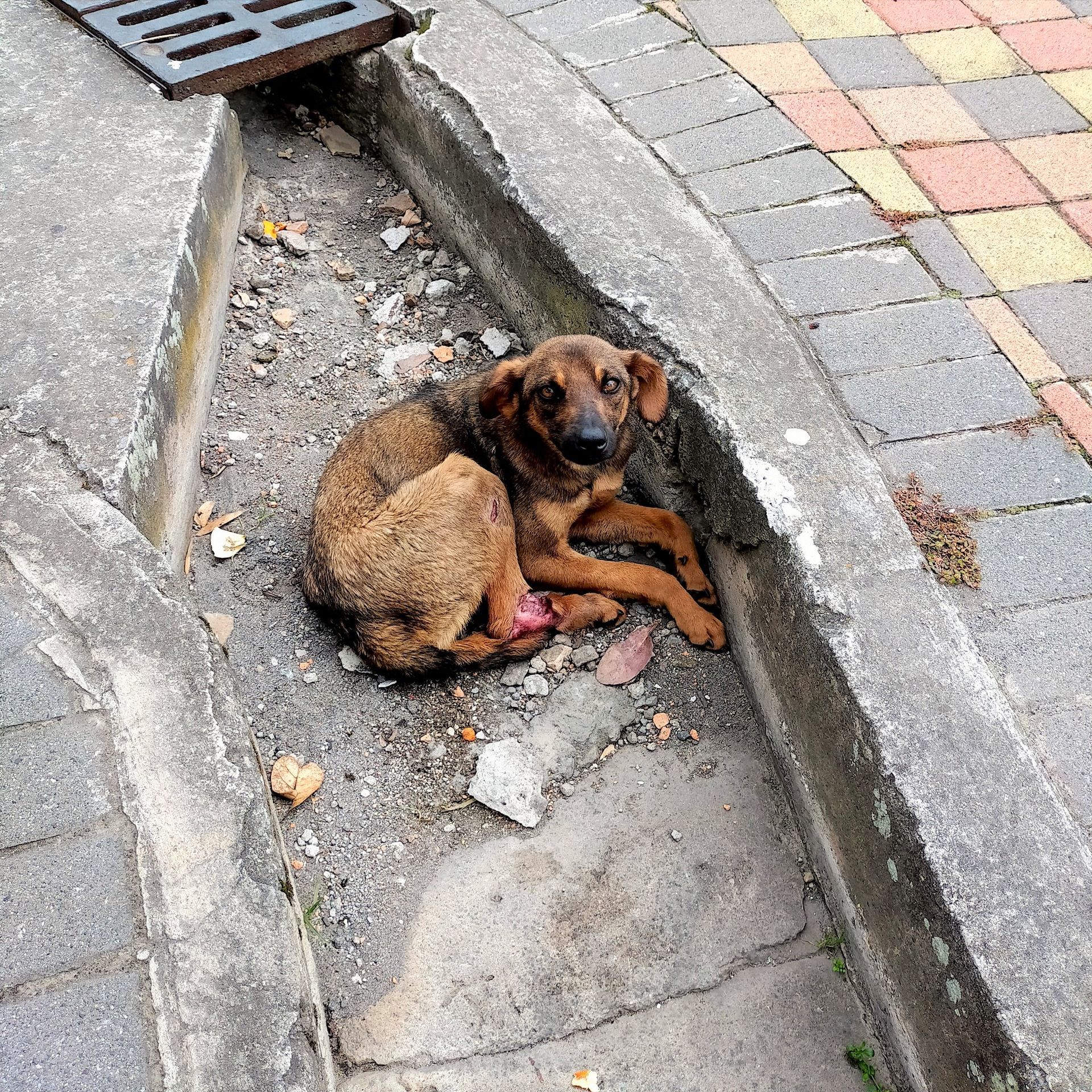Amici Cannis se compromete a brindar toda la atención veterinaria necesaria para los perros de nuestra comunidad. Entonces, cuando Sydney fue descubierta un día por un miembro de la comunidad local, acostada en una zanja, con desgarros completos en la piel de sus patas traseras que exponían sus tendones e incapaz de caminar, se contactó al hospital.